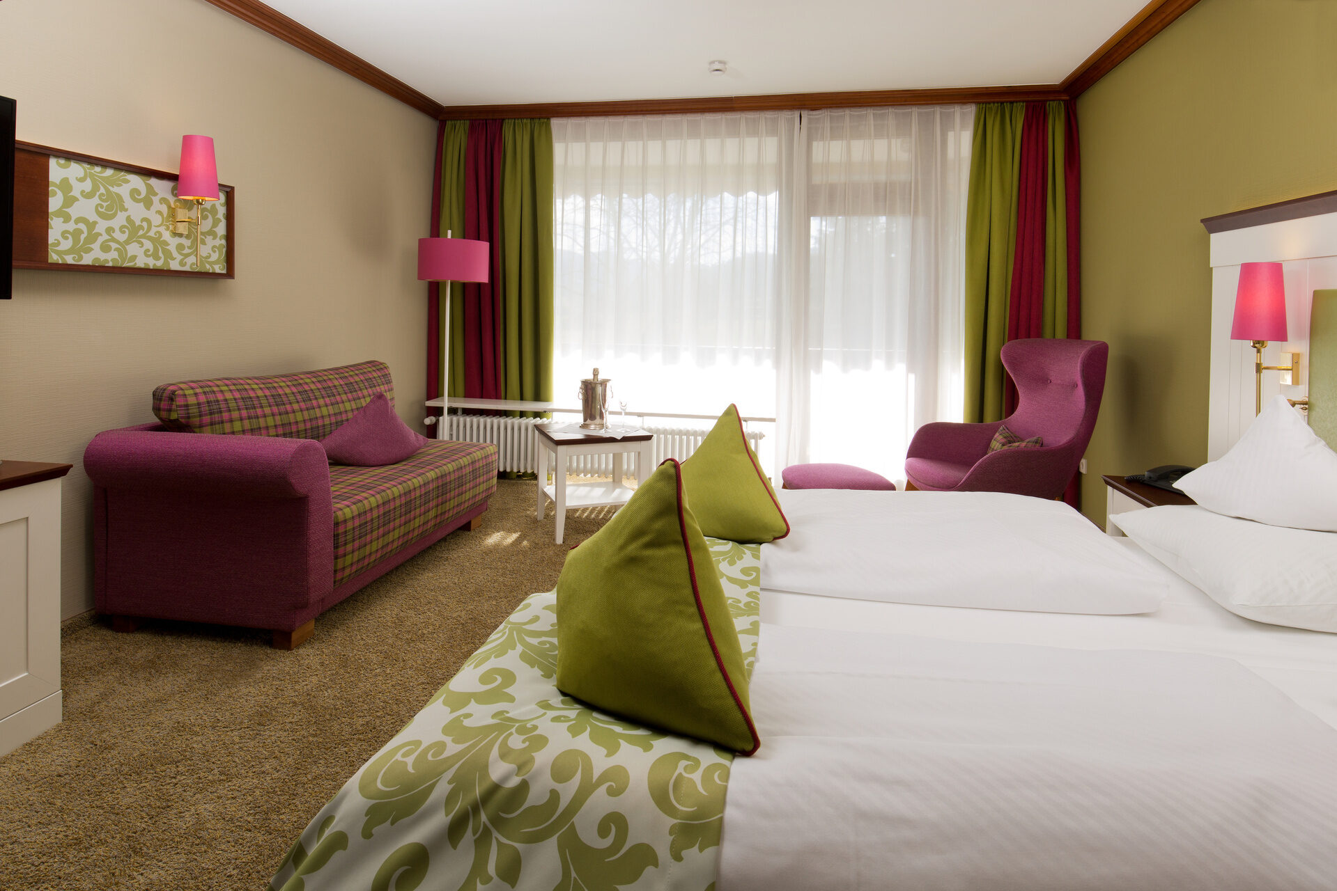 Unsere Deluxe- Zimmer verfügen über eine gemütliche Sitzecke und einen Südbalkon (Ausnahme = Unser "Studio" hat keinen Balkon). Flatscreen-TV, Minibar und Safe sowie die kostenlose Internetverbindnung via WLAN runden das Angebot ab.